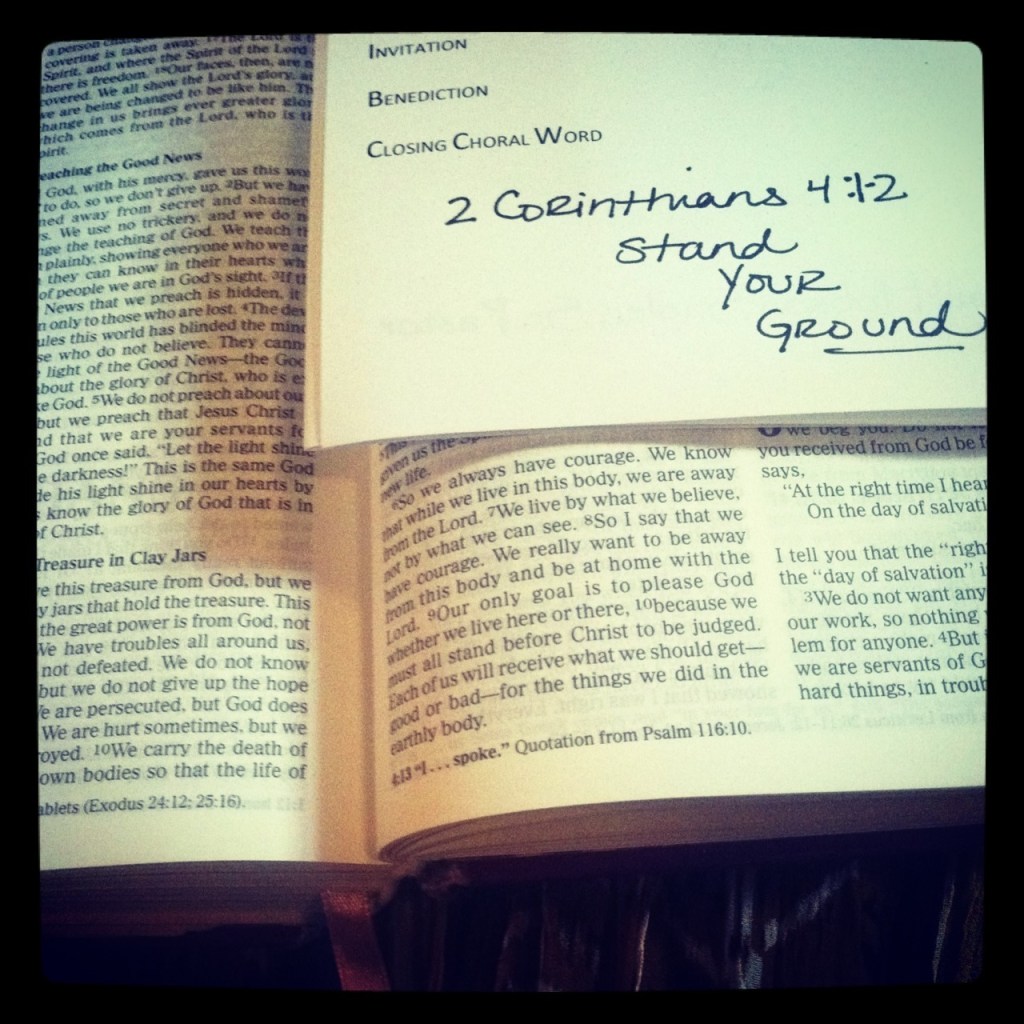 Since God has so generously let us in on what he is doing, we’re not about to throw up our hands and walk off the job just because we run into occasional hard times. We refuse to wear masks and play games. We don’t maneuver and manipulate behind the scenes. And we don’t twist God’s Word to suit ourselves. Rather, we keep everything we do and say out in the open, the whole truth on display, so that those who want to can see and judge for themselves in the presence of God. (The Message)