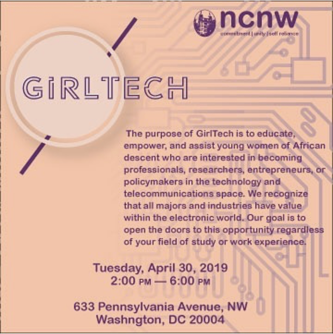 On Tuesday, April 30, The National Coalition of Negro Women (NCNW) launched, #GIRLTECH, a conversation with professionals who may not have started in the technology field but found their passion has led them to companies or organizations where technology plays an important role.